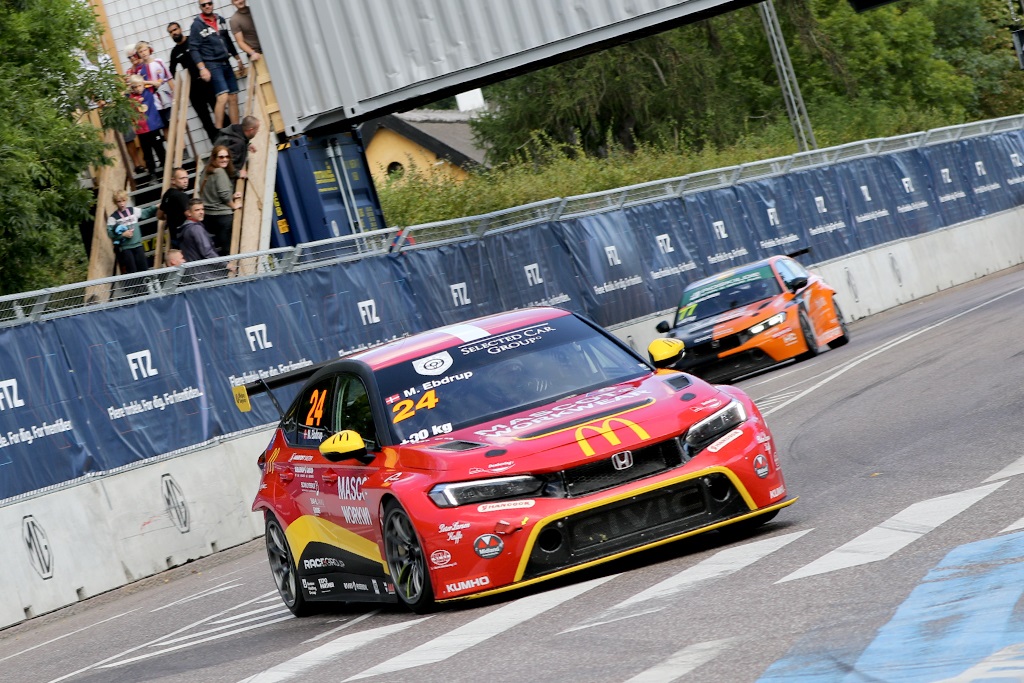 Efter en genstart skød Malte Ebdrup sig fra følgerne og kørte en sikker sejr hjem. Efter ham kæmpedes der indædt, og det blev Mike Halder der tog andenpladsen foran Kasper H. Jensen.  Malte Ebdrup. (Foto: Motorsporten.dk)
