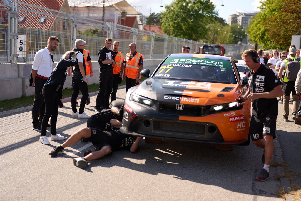 En punktering kostede chancen for finalesejr for Mike Halder, mens Kasper H. Jensen viste tænder ved Copenhagen Historic Grand Prix 2025.