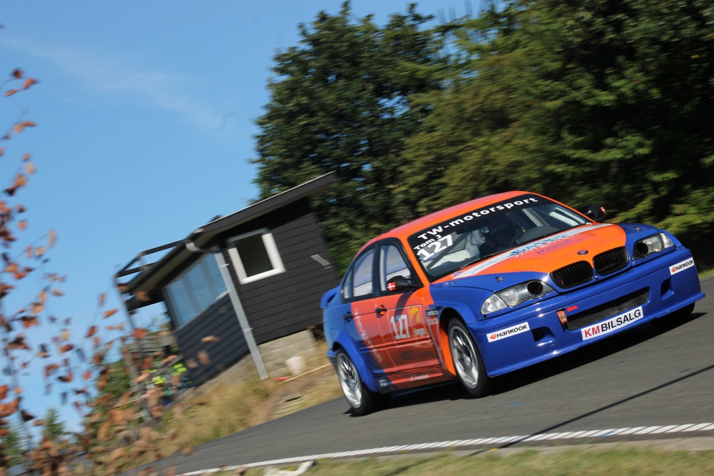 Revideret resultat 12.32 Dagens første løb blev vundet i sikker stil af den hurtige BMW kører Tom Jørgensen. På andenpladsen sluttede Tino Vang Jørgensen i hans SEAT Leon og han blev fulgt af Torben Granly Jensen i BMW  Tom Jørgensen. (Foto: Motorsporten.dk)