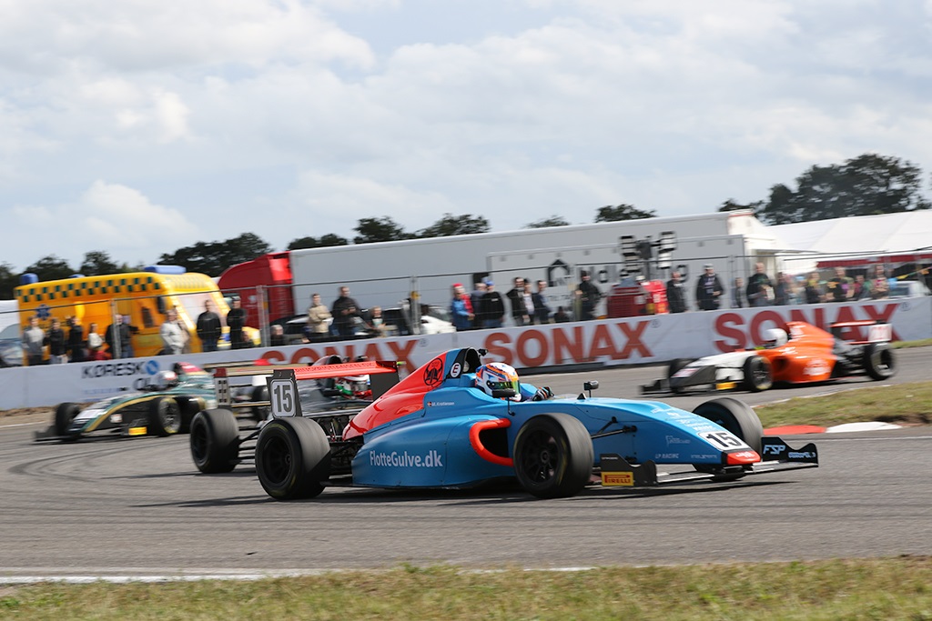 Det blev et løb med en serie gode og knapt så gode kampe om pladserne. Efter en genstart blev feltet samlet og sejren tog Marius Kristiansen foran Sebastian Bach. Tredjepladsen nåede F5 køreren Mads Hoe at score i et tæt opløb.