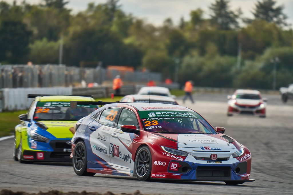 Det var Kasper H. Jensen, som med en meget smal margin satte pole position, men da starten gik til Race 1, fløj Malte Ebdrup afsted og fik held med at få et forspring til Jensen. Bag dem måtte Jan Magnussen arbejde for at holde en velkørende Mathias Dall bag sig, mens Oliver Larsen fik sin TCR-løbsdebut og kunne slutte på sjettepladsen foran Magnus Dall.
